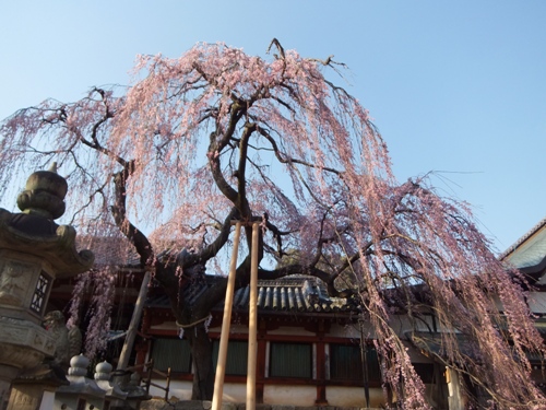 これが有名なしだれ桜です。まだ、6分か7分位でしょうか。