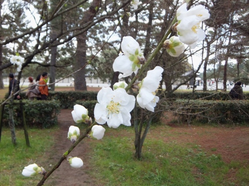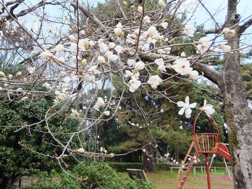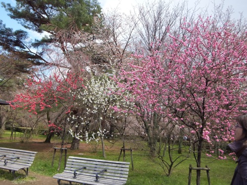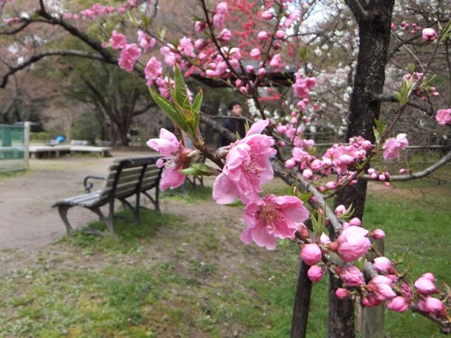 その隣に児童公園があって、そこに桃の花が少し咲いています。