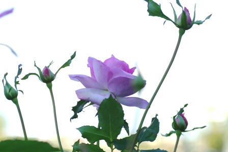 がんさんのお陰でこうして美しいバラを見る事が出来ました。ありがとうございます。人って、美しい物を見ると心もすがすがしくなりますよね。特にバラは群生のお花とは違って、一つ一つに個性があって、自分を主張してるって感じで、見甲斐があります。