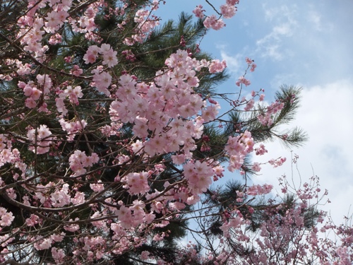 ピンク色で、ちょっと小さくて、八重で、本当に可愛いです。これは彼岸桜系の桜みたいです。