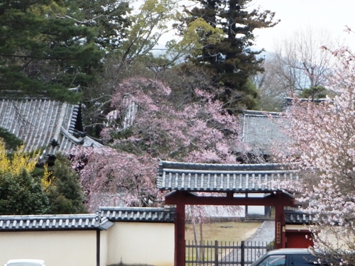少し高い所から勧進所を見ると奥の方にも立派なしだれ桜が見えます。