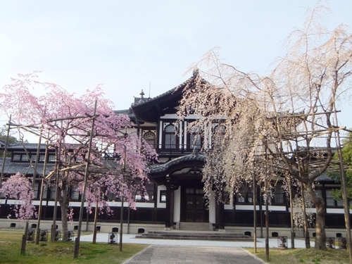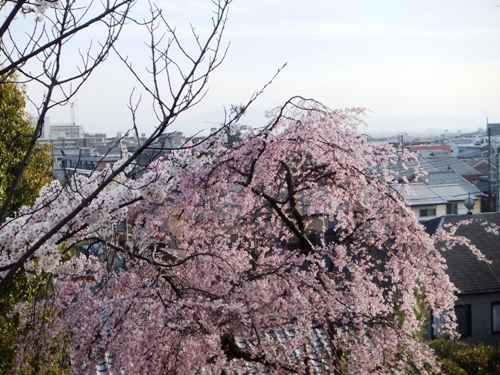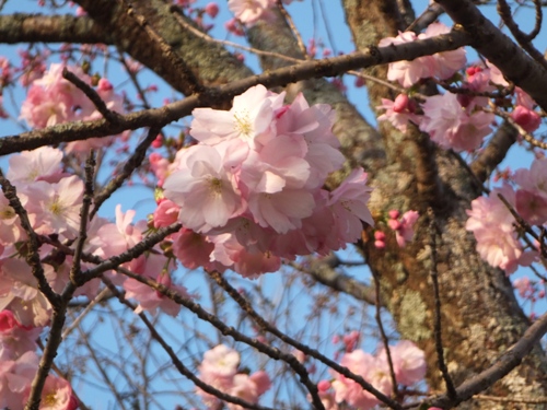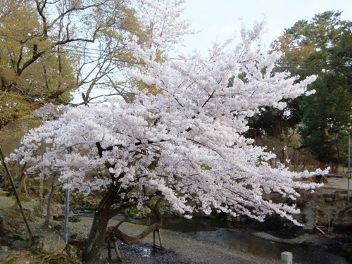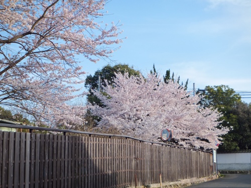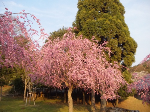 紅白のしだれ桜が咲いているお馴染の光景です。