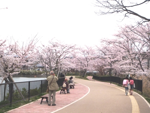 近所ではありませんが、あやめ池に用事があったので、行ったら、綺麗な桜並木がありました。(4/13)