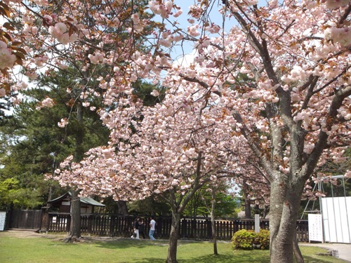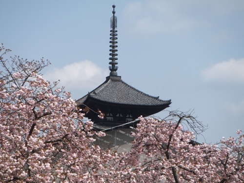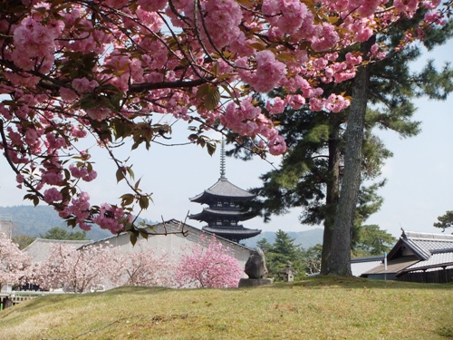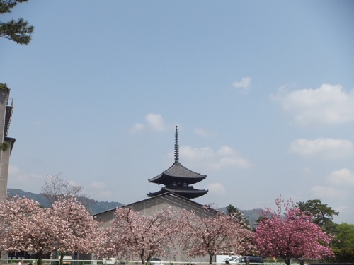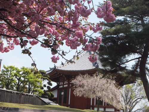南円堂と八重桜。しだれ桜はもう終わりです。