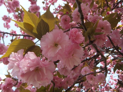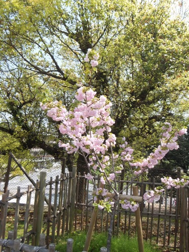 五十二段の上がった所に楊貴妃の桜が咲いていました。まだ若木みたいです。