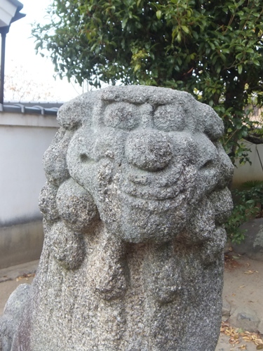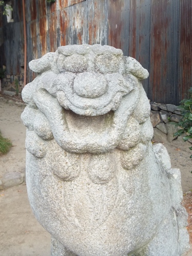 あ形の狛犬 すごい笑顔に見えます。完全に笑ってますよね。