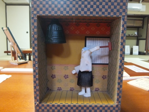 小坊主さんが、鐘をたたいています。からくりも係の方が教えて下さいました。