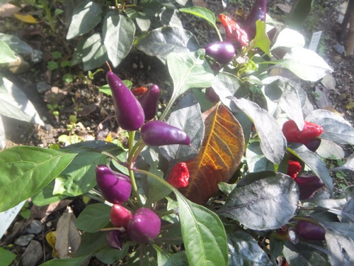 観賞用のトウガラシ。赤やオレンジは良く見かけますが、紫は珍しいですね。