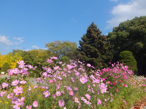 この時期にコスモス、薔薇、紅葉その他多くの植物を見られて関西はやはりいいですね