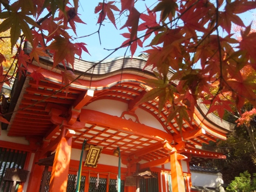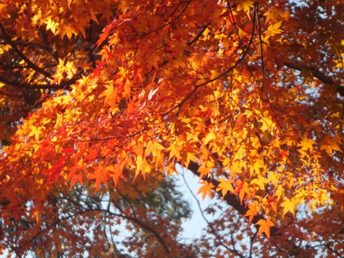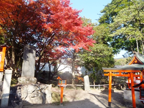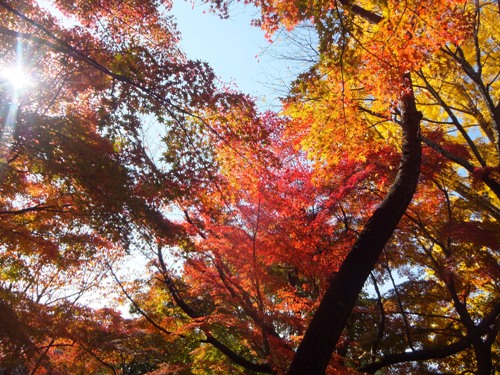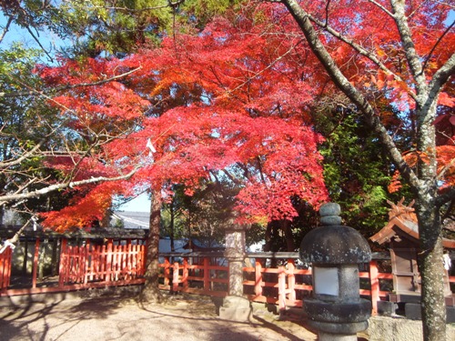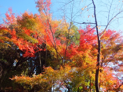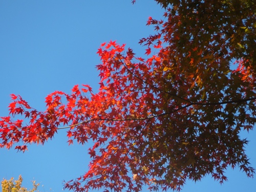 青空の下の真っ赤な紅葉が見事でした。