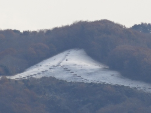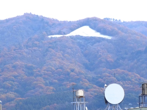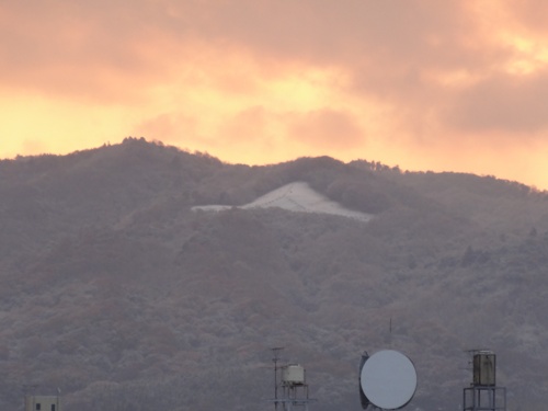朝10時 大文字の火床にしっかりと雪が積もっています。高円山の初冠雪?
