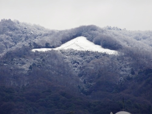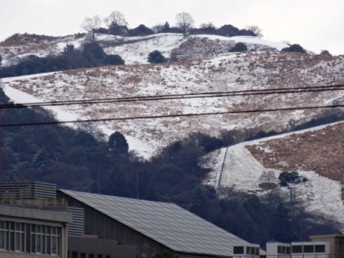今年、と言うか、この冬、初めて高円山、春日山、若草山の山頂に雪が積もりました。