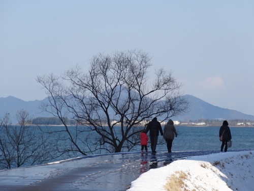 向うの比良山系に雪が積もってるのが、素晴らしいんです。