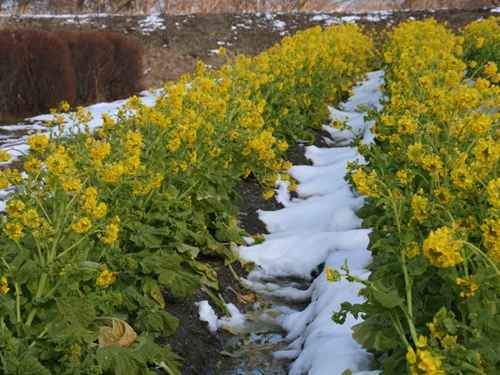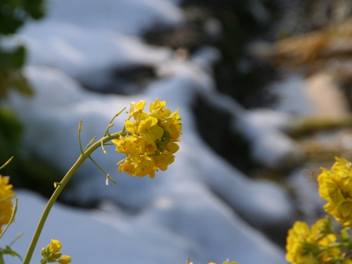 雪を借景にした花菜