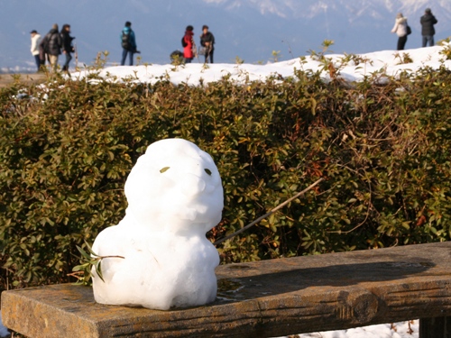 積雪は多分、この辺り、10cm以上だと思います。あちこちに子供達が作った可愛い雪だるまがありました。