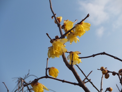 まずは、ロウバイの木です。ものすごく短くと言うか、小さく剪定されていたので、