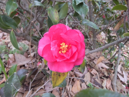 早咲きの八重の紅梅が少し咲いていました。名札はありません。