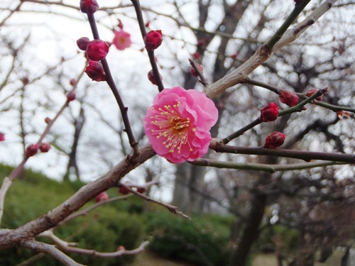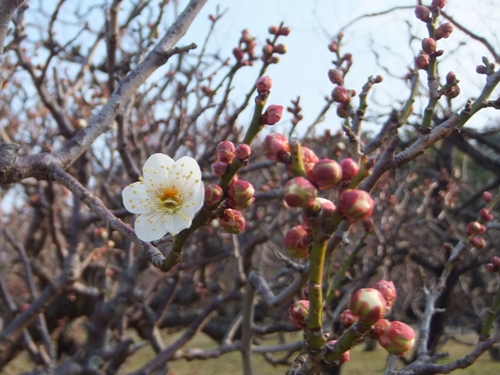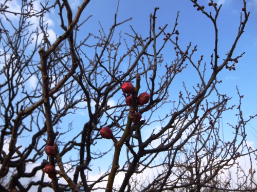 「一重野梅」こちらはまだ少しですが、蕾が随分膨らんでいますね。