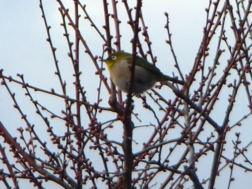帰る直前、メジロを発見! 今年の初メジロですよ。