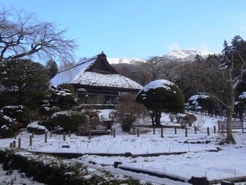 すごい雪が積もっていてびっくり。かやぶき屋根が素敵です。