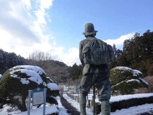 銅像が見ている方角に富士山が見えるのですが、全く見えません。