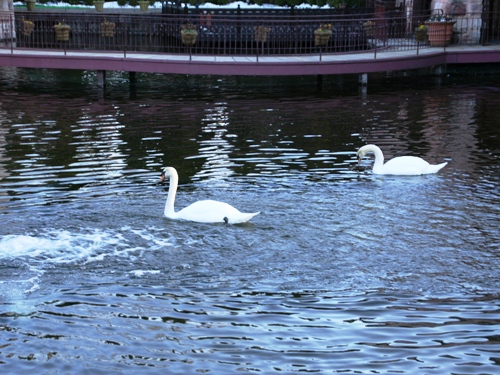 池には2羽の白鳥が。