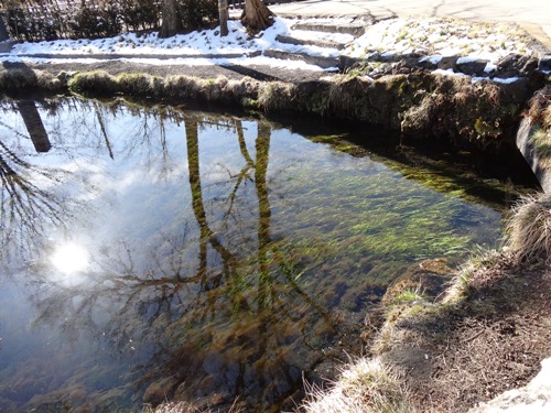 水がとても綺麗で、梅花藻と思われる藻が生えていました。