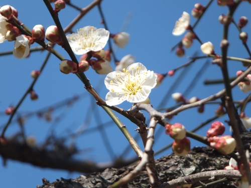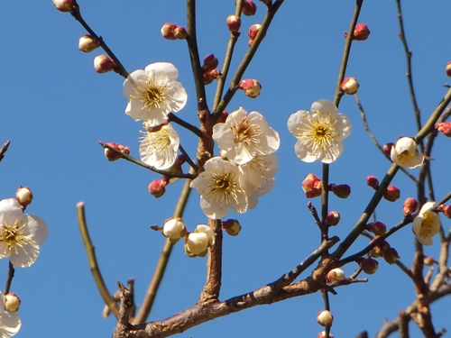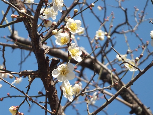 片岡梅林の早咲きの白梅はそこそこ咲いています。