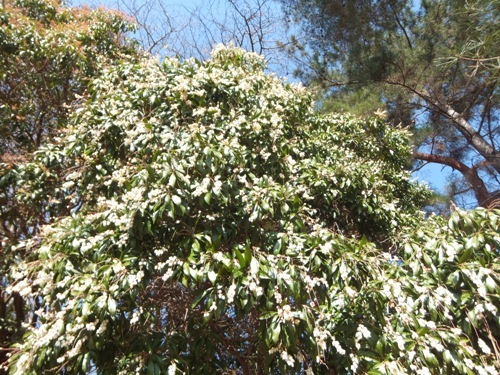 浮見堂のある鷺池のアセビは満開 アセビは低木のイメージなんですが、これはかなりデカイです。