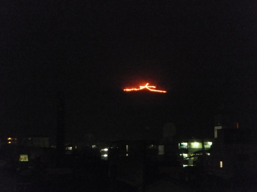 8/15(木) 奈良の高円山で大文字の送り火がありました。