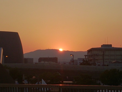 見るのですが、生駒山に日が沈むのはなかなか見られないので、