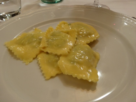ヴィオリと言うパスタ料理です。小さい四角いパスタ2枚で