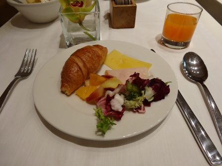 パン、フルーツ、ハム、チーズ、そして、やっとサラダが登場