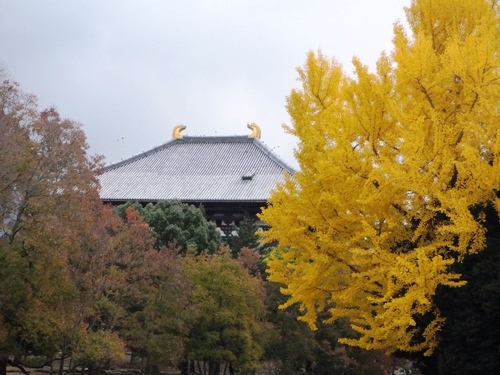 大仏殿とイチョウの黄葉 大仏殿の真裏です。