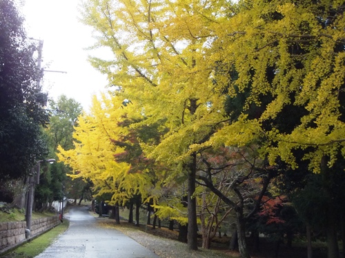 講堂跡付近のイチョウの黄葉 数本まとまって植わってます。