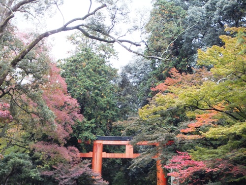 手向山八幡宮の一の鳥居 グラデーションのカエデが綺麗です。