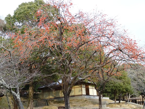 荒池園地の柿 この実は全部鹿さんのデザートになるのでしょうか。