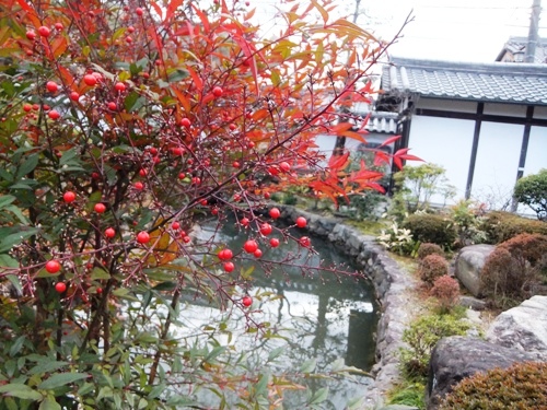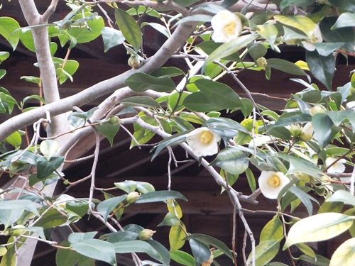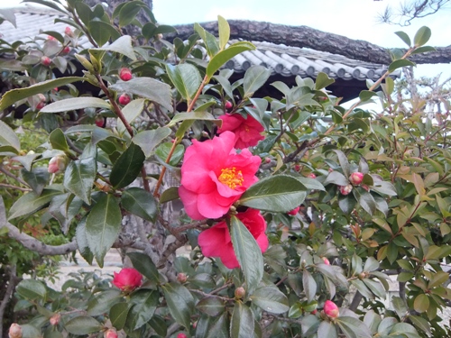 ピンクの寒椿が咲き始めていました。(十輪院)