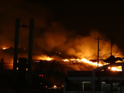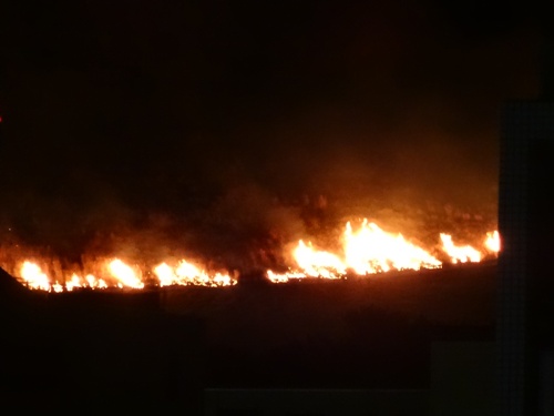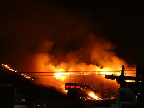 ちょっと角度を変えて。山が燃えてる感じが分かると思います。