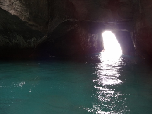 中に入ると本当に水が青色でした。本場イタリアのカプリ島の