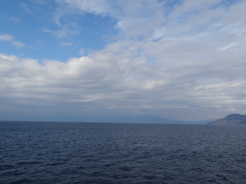 土肥港から清水港へ。本当なら、ここに富士山が見えるのですが。