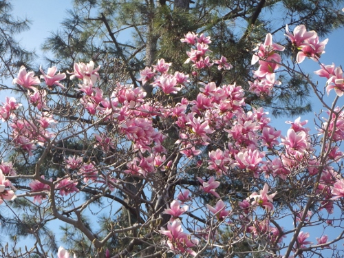 紫っぽい色のモクレンを見かけます。シモクレンと言います。
