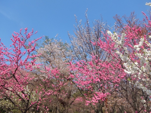 糸桜がたくさん植わっている所の隣には、児童公園があり、桃が