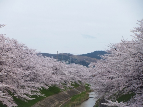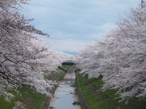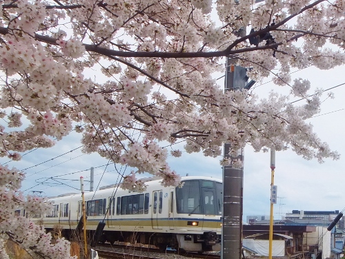 佐保川の上をJRが走っています。桜並木の真ん中を通過します。
