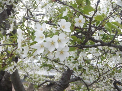 真っ白の中に、時々しだれのピンクがちらっと見えます。