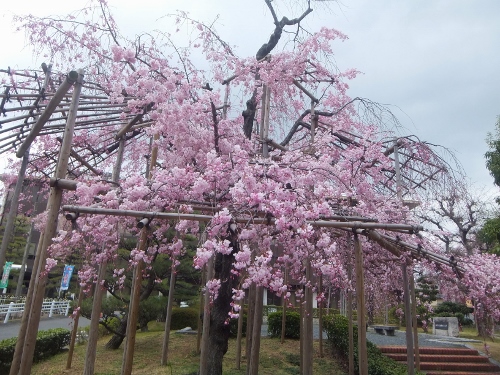 帰りに、ふと大和郡山市役所の方を見るときれいなしだれ桜が