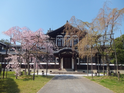 奈良仏教資料研修センター 右のしだれ桜は散って、左のしだれ桜が