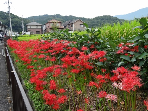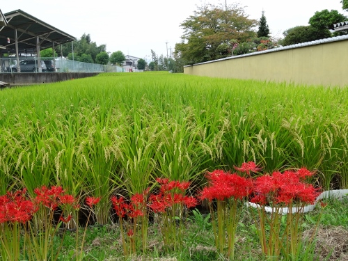 田んぼと彼岸花 稲がまだ刈られてないので、絵になります。