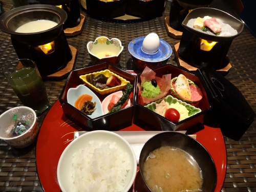 こういう朝食が理想ですね。特に左端に置いてある野菜ジュースがすごく美味しかったです。