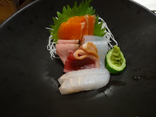 山里の造り 虹鱒の昆布じめ ひらめ 合鴨の炙り焼き ローストビーフ コラーゲン